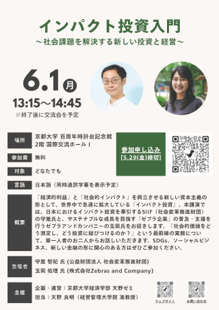 第一人者であるお二人から直接話を聞ける貴重な機会です。SDGs、ソーシャルビジネス、新しい金融の形に関心のある方はぜひご参加ください。
