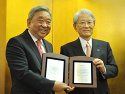 曹副会長(左)と松本総長(右)