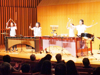 Flying Malletsの演奏は、誰もが知っているおなじみの曲を楽しくアレンジしたもので、曲の間に珍しい打楽器の紹介なども交え、親しみやすく、迫力のある演奏でした。後半には参加者も手拍子で演奏に参加し、一体となって楽しみました。