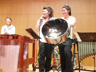 会場の様子 | スティールパンの解説をする出演者 |