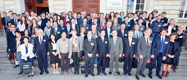 京都大学はボルドー大学 (Université de Bordeaux)との共催で「Bordeaux-Kyoto Symposium」を開催しました。2011年、Campus of Excellenceとしてフランス国内で認定を受けた3校の一つであるボルドー大学と本学が、さまざまな研究分野で接点を作り、両大学間の国際共同研究の推進に寄与することを目的としたシンポジウムで、本学からは理事、教員、学生、事務スタッフ等総勢54名、ボルドー大学からの参加者約60名、2日間でのべ200名を超える参加者が出席しました。