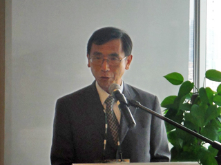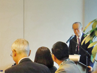 開会挨拶をする尾身理事長 | 講演する森機構長 |
