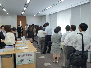 説明後に設けられた個別相談コーナーでは、実用化に関心を示した企業関係者が多数順番を待つブースも見られるなど、今後、共同研究や技術移転等、産学連携活動への展開が期待される説明会となりました。