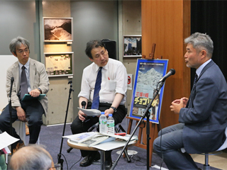 座談会の様子(澤田教授(中央)、飯田准教授(右)) | 座談会の参加者との活発な討論 |