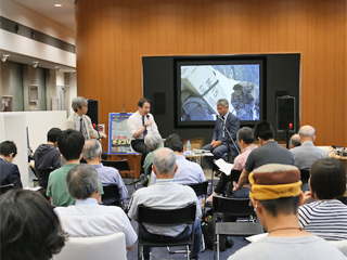 戦後日本の山岳遠征・学術探検調査と映画公開・テレビ放映等との対応・変遷を概観し、学術研究と映像記録のあり方、それら記録の保存を考える飯田准教授の講演に、参加者は熱心に聞き入っていました。引き続き行われた座談会では飯田准教授に加えて澤田教授が参加し、映像記録の証拠性・編集性、映像人類学の研究様式等を取り上げ、参加者も交えて活発な質疑応答により議論を深めました。