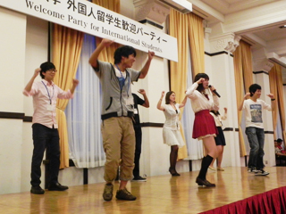 次に、中国からの留学生グループが歌とダンスを披露した後、モンゴルからの留学生の音頭によって、有志の留学生が「幸せなら手をたたこう」を各国の言語で歌い、会場が一体となって盛り上がりました。