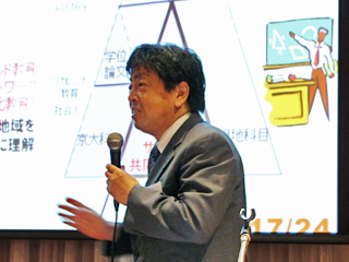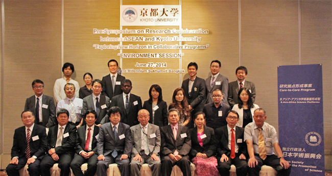 同日の午後には、28日開催の京都大学ASEAN拠点開所式に先立つプレシンポジウムで、JSPS研究拠点形成事業「インドシナ地域における地球環境学連携拠点の形成」主催の第8回ワークショップが開催されました。ワークショップには、地球環境学堂やJSPSからの参加者の他、タイ(マヒドン大学、キングモンクット工科大学トンブリ校、キングモンクット工科大学ラカバン校)、ベトナム(ハノイ理工科大学、フエ大学、フエ農林大学、ダナン大学、ダナン工科大学)、カンボジア(王立農業大学)、ラオス(チャンパサック大学)から学長を含む主要な教員が出席しました。参加者全員の自己紹介の後に、地球環境学堂における海外での取組が報告され、その後にASEAN地域各大学での、環境問題への取組や大学の教育研究の海外連携について事例発表が行われ、熱心な討議が続きました。