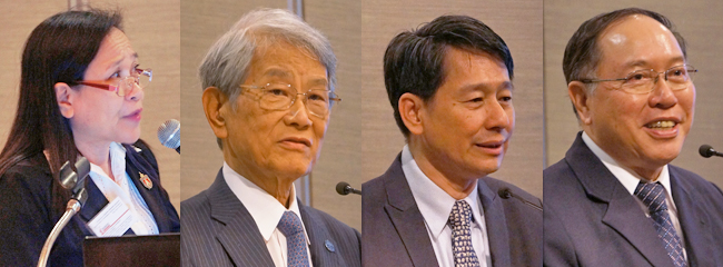 司会進行するAnchaleeporn氏、挨拶する松本総長、Sucharit会長、Krisada氏