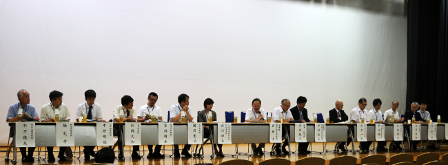 第1部では、淡路敏之 理事・副学長の開会挨拶を皮切りに、平成28年度入学者選抜方法の変更の説明を行い、さらに、先般発表した京都大学特色入試について概要の説明を行いました。