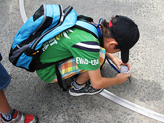 当日はたいへん気温の高い日でしたが、子ども達は汗を流しながら元気に歩きまわり、チェックポイントに置いてあるシールを見つけると歓声を上げて駆け寄って、手持ちの地図に貼り付けていました。