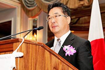 受賞スピーチをする森教授