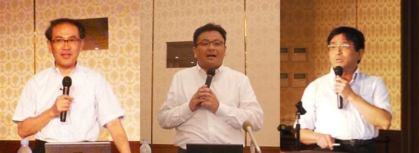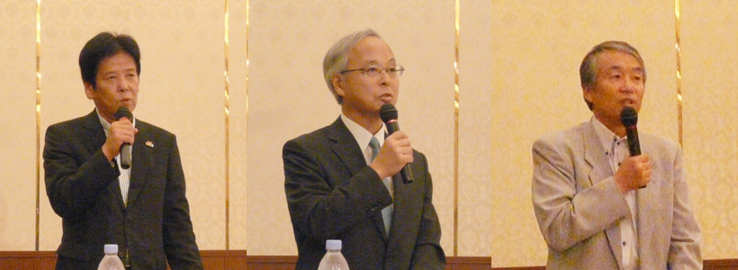 左から、岩城孝章 高知県副知事、大志万直人 防災研究所長、中野晋 自然災害研究協議会四国地区部会長