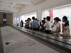 開催に先立ち行われた記者発表および内覧会には、学内外約30名の出席がありました。五島敏芳 総合博物館講師の挨拶の後、本展覧会実行委員の 小山勝二 京都大学名誉教授および竹本修三 京都大学名誉教授から展覧会について解説があり、出席者は実物の望遠鏡にびっくりし、明月記と天文学のつながりに興味を持ちながら熱心に展示を鑑賞しました。