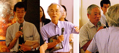 左から、内覧会での五島講師の挨拶と小山名誉教授・竹本名誉教授の解説