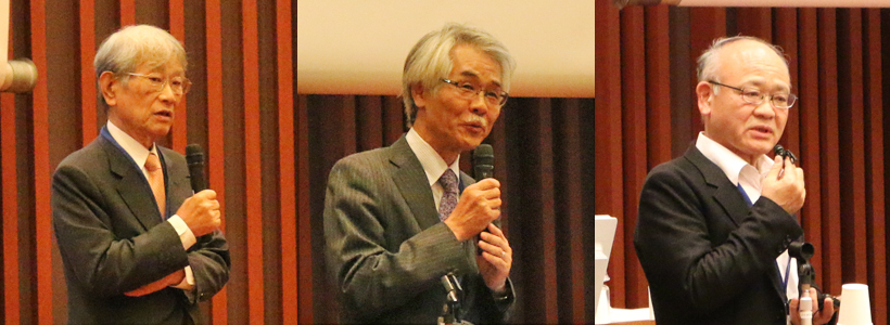 左から、松本総長、北野教育院長、淡路理事・副学長