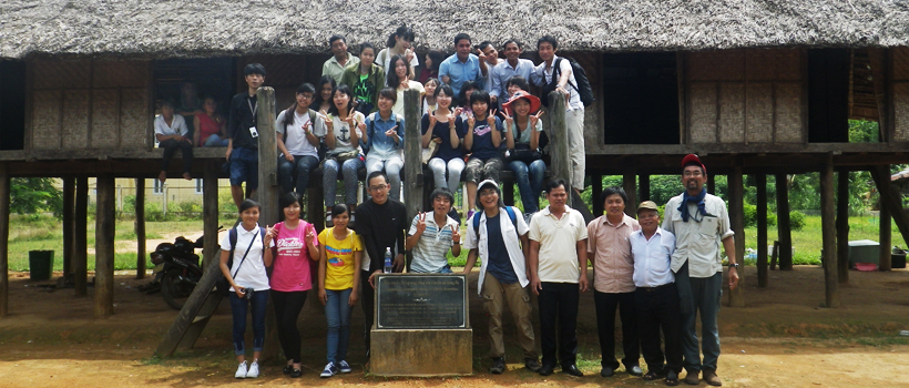 国際交流科目「暮らし・環境・平和-ベトナムに学ぶ」では、これまで約110名の本学学部学生がフエ大学を訪問しています。2014年度も12名の本学部生と教員2名がベトナムで臨地研修を実施しました。