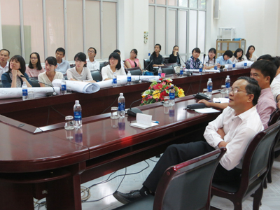フエ大学での発表会にて聞き入る学生・教員
