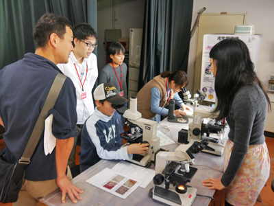 公開ラボでは、災害時に生き延びる方法等のクイズに答え防災グッズをゲットという「サバイバルクイズ」や、光学顕微鏡と電子顕微鏡を使って身近な食べ物を構造観察を行う「ミクロな目で見る身近な食べ物」など、普段は見ることができない研究施設や実験室の公開などが行われたくさんの最先端研究を紹介しました。