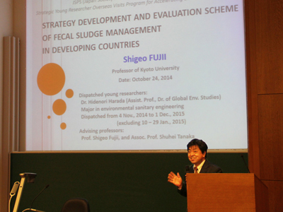シンポジウムは藤井滋穂 地球環境学堂長の開会の挨拶に続き、勝見武 同教授(主担当研究者)から本プログラムの説明がありました。続いて、Raf Dewil ルーヴェン・カトリック大学教授およびLise appels 同教授からの講演がありました。その後、本採択課題に関連する受入研究者、派遣研究者および担当研究者が各々の研究発表を行い、それらを交えながら、アジア地域を中心に培ってきた地球環境学の学際的な国際共同研究・国際連携の実績、ノウハウ、組織体制をベースとして、欧米等先進諸国に焦点を絞り国際共同研究ネットワークの強化・拡張をどう構築していくべきかについて活発な議論を交わしました。最後にRaf Dewil 教授より閉会の挨拶があり、盛会のうちに幕を閉じました。