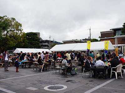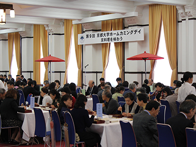 講演会後の、老舗料亭の京料理(京弁当、煮物椀)を味わうイベントや、百周年時計台記念館前庭のクスノキを中心に飲食等の屋台を展開した「クスノキ屋台村」など、例年にない新しいイベントが好評を博し、特に「クスノキ屋台村」では、ホームカミングデイ限定のオリジナル菓子の販売や学生の屋台やパフォーマンスなどがあり、多くの参加者で賑わいました。
