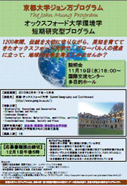 本プログラムは、オックスフォード大学School of Geography and Environmentの協力を得て、本学博士課程在籍者1名を派遣するものです。School of Geography and Environmentの教員の指導を受けながら、1学期間非正規生として研究活動および資料収集を行うことを目的とします。
