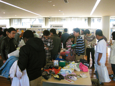 宇治地区関係者から家庭に眠っている遊休品の提供を受け、無償で外国人研究者・留学生に提供するリサイクルフェアの開催は今年で9回目、例年と同様、外国人研究者・留学生と教職員との交流会も同時開催しました。