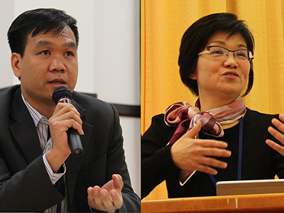基調講演を行うHoang Trung Thanh ハノイ科学大学講師(左)と岩崎奈緒子 総合博物館教授(右)