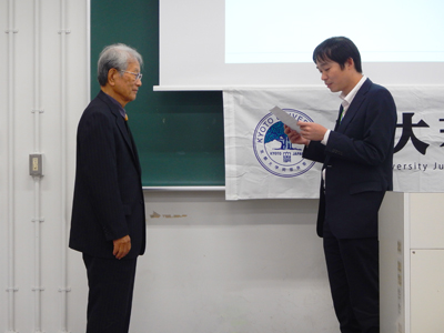 今回の総会で、初めて役員および名誉会員の任命式と賛助会員の認定式が行われました。新たに役員に就任したのは、山川早霧 理事(法学部・2005年退学)、王云澈 理事(経済学研究科・2006年修了)、松成恭博 理事(理学研究科・2006年修了)の3名で、あわせて名誉会員に松本前総長、賛助会員に田辺裕美 氏がそれぞれ任命・認定されました。初の名誉会員となった松本前総長からは、同窓生とのつながりの大切さについての訓示がありました。