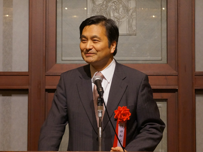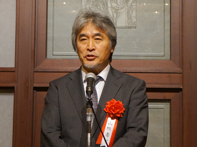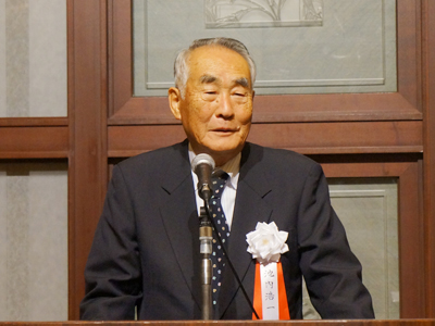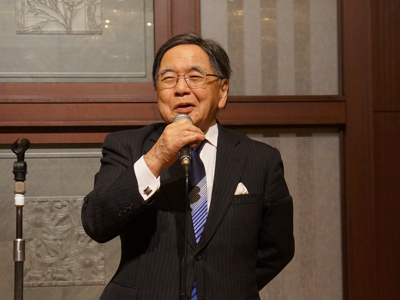 若い会員の参加も多く、賑やかに盛り上がる中、出席者全員で「琵琶湖周航の歌」および「京都大学学歌」の合唱が行われ、赤岡功 副会長(経済学研究科・1967年修了)の万歳三唱の挨拶をもって閉会となりました。