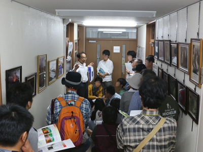施設探検バスツアーには、2日間で85名の参加がありました。普段、人の入らないハルタ山観測坑道に入っての観測機器と観測坑道の役割についての説明では、参加者から多数の質問があがりました。次に訪れたハルタ山観測室(旧桜島火山観測所)では、屋上から桜島を間近に望み、目の前に見える急峻な北岳と活動中の南岳の説明や、錦江湾を含めた姶良カルデラについての解説を行い、また、50年以上稼働している機械式地震計と気圧計を見学しました。最後に、黒神観測室から現在活動中の昭和火口を観察しました。施設公開では、大正噴火時から現在の噴火までの写真、映像、開所当初から行っている煤描き地震記録装置、噴火予知をする最新データ処理装置の解説が特に好評でした。