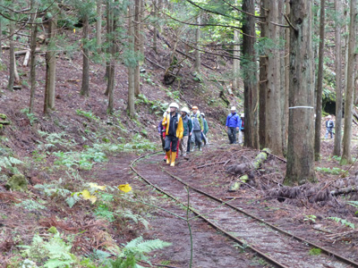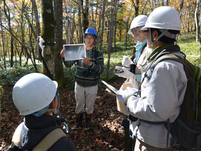 今回は、「生態学からみる、森と地球と私たち」と題して、11月1日は教員から4件の講義の後、技術職員がカエデ類の識別方法について説明をしました。その後研究林内のトロッコ軌道に添って林内散策を行い、樹木の識別や、研究林内における森林利用の歴史等について解説しました。翌日の11月2日は、研究林上谷歩道を散策し、天然林の現状と保全に関して解説を行いました。2日間とも雨模様ではありましたが、参加者らは、最新の研究成果を学ぶとともに、紅葉の季節の森林散策を楽しんでいました。