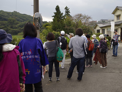 講義室での施設概要説明の後、10時より3班に分かれて約2kmの観察会コースを約2時間半かけて散策しました。散策中、コースに生育する国内外のさまざまな植物を中心に教職員が解説を行い、その後、温室栽培種および標本館の見学を行いました。参加者は紅葉により色づいた森での散策を楽しんでいました。