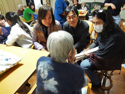 北白川の花の家にて入居者と交流する参加者たち