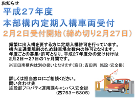 平成27年度の車両入構許可申請受付を以下の期間行います。