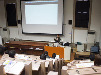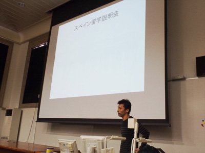 国際交流センターおよび国際学生交流課では、2014度も本学学生の海外留学支援のため、「留学のススメ」と題して、年間を通じて各種留学説明会を実施し、さまざまな留学情報をお届けしています。その一環として、12月17日の昼休みの時間を利用して、「(特別編)スペイン留学説明会」を国際交流センターKUINEP講義室で開催しました。