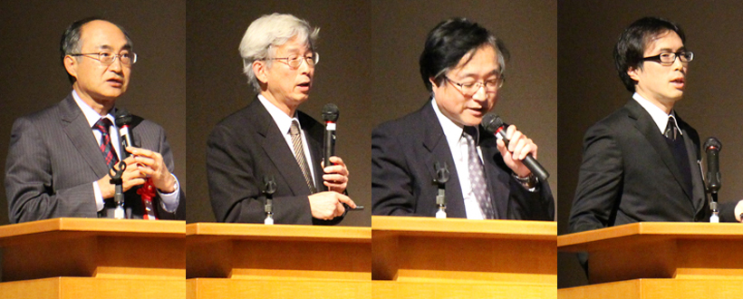 左から、野村プロジェクトリーダー、岩田教授、平尾教授、阪本助教