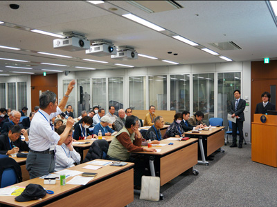 近年、日本各地で発生した土石流災害や土砂災害などの例を挙げながら、集中豪雨による斜面災害のメカニズムなどについて、松四准教授は講演しました。来場者は、松四准教授の話に興味深く聴き入り、講演後には熱心な質疑応答が行われました。