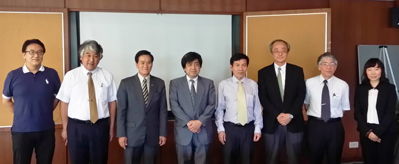 地球環境学堂を中心とする一団が、タイ・バンコクのアジア工科大学(AIT)を訪れ、Worsak Kanok-Nukulchai 同大学長・教授と山本和夫 同大学副学長・教授への表敬訪問を行いました。メンバーは藤井滋穂 地球環境学堂長 、舟川晋也 同副学堂長、梶井克純 同教授、哈布爾 同研究員と縄田栄治 農学研究科副研究科長およびHuynh Trung Hai ハノイ理工科大学環境理工学部長・准教授です。