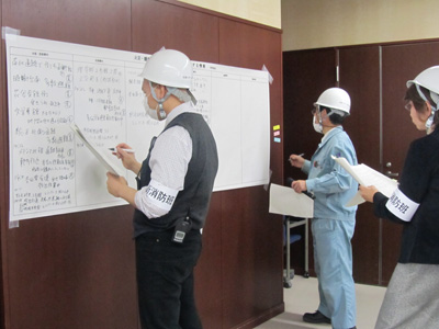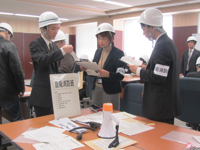 訓練では、事務本部災害対策本部各班員が、マスコミ情報や学内の被害情報および教職員の安否確認状況等を収集・整理し、情報の共有・伝達を行いました。また、役員および各対策班長が、大規模地震発生時の災害対策本部会議を立ち上げ、各被害事案に対しての対応を決定し、初動段階における本学の対応についてシナリオに基づく訓練を行いました。