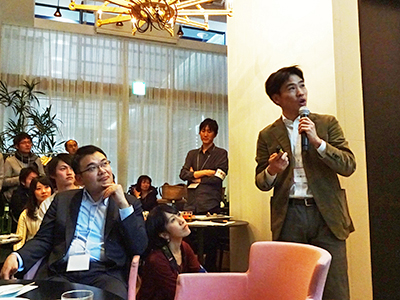 若手会の初の試みとして行われた、起業家の会員4名によるミニスピーチでは、法学部卒業生(1993年卒)が「キャリア半生のオモテウラ」、農学研究科修了生(2004年修了)が「鴨川源流での失意から永田町で起業した話」、理学研究科修了生(2012年修了)が「現代科学の世界観」、そして経済学部卒業生(1998年卒)が「つながりで人生はガラリと変わる」を内容とした、それぞれの卒業後の軌跡と熱い想いを語っていただきました。その熱い語り口に参加者は大いに刺激を受け、将来に夢を馳せました。