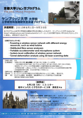 - 説明会: 2015年6月2日(火曜日) 12時10分~ 桂キャンパスCクラスターC3棟 講義室4a