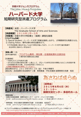 ハーバード大学短期研究型派遣プログラム参加者を募集します。