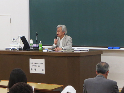 林信夫 法務・人権推進室長の開会挨拶の後、酒巻匡 法務・人権推進室副室長(法学研究科教授)が本学のハラスメント対応制度について、中川純子 学生総合支援センター准教授がハラスメント相談の心構えについて、講演を行いました。