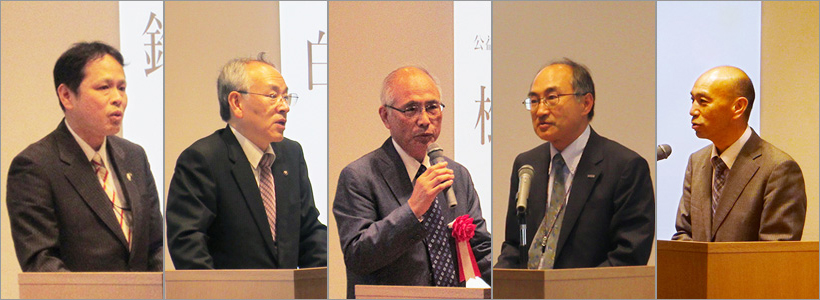 本拠点プロジェクトリーダーの野村剛 パナソニック株式会社常務取締役の開会挨拶に始まり、COI STREAMビジョン1 ビジョナリーリーダーの松田譲 加藤バイオサイエンス振興財団理事長、鈴木一弥 京都府商工労働観光部特区推進監、白須正 京都市産業戦略監より来賓の祝辞がありました。