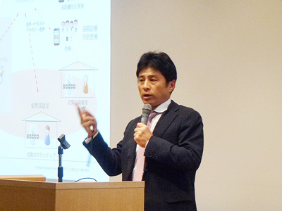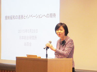 続いて、「規制緩和の進捗とイノベ―ションへの期待」と題して、翁百合 内閣府規制改革会議委員・日本総合研究所副理事長による基調講演を行いました。その後、拠点内の各グループ毎の活動や研究開発についての講演を行いました。