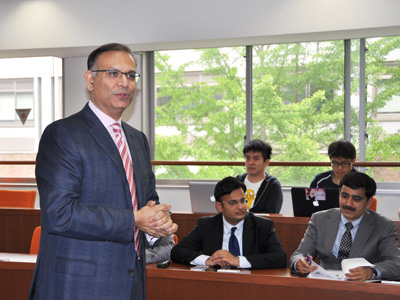 総合研究2号館ケーススタディ演習室にて、経営管理大学院附属経営研究センター主催で、Jayant Sinha インド政府財務大臣による第9回グローバルビジネス講演会を開催しました。