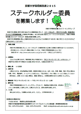2014年度のステークホルダー委員の活動については、「京都大学環境報告書2014」および以下のホームページで見ることができます。