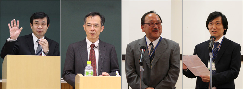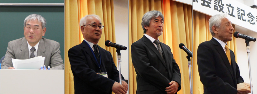 左から井川副会長、渡辺会長、山極総長、楠名誉教授