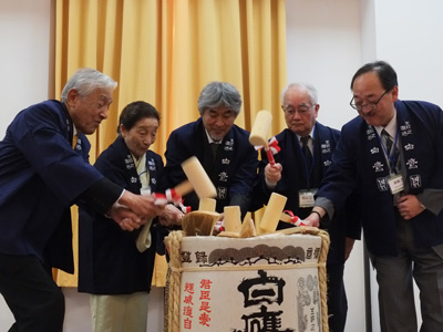 懇親会での鏡割りの様子
