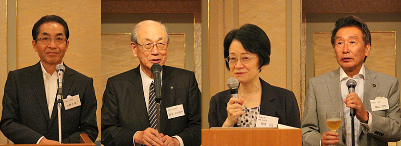 左から、司会を行う小野木幹事、挨拶を行う岡本世話人、講演を行う稲葉理事・副学長、乾杯を行う細江市長